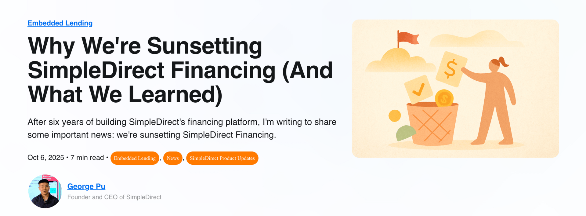I was sitting on the subway at 8AM Tuesday, about to send shutdown emails to all our SimpleDirect customers at noon. The blog post was published.