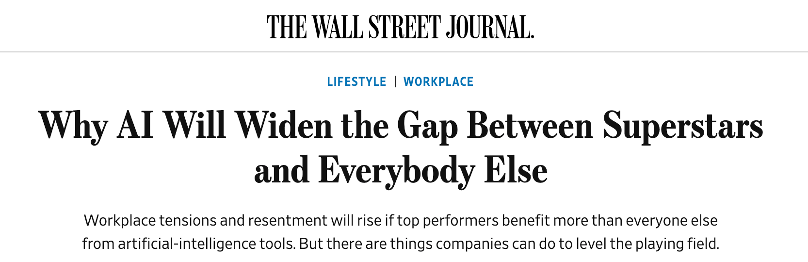Wall Street Journal published research (I gave you a free link for the article →) showing AI is widening the performance gap between superstars and average employees in traditional companies.